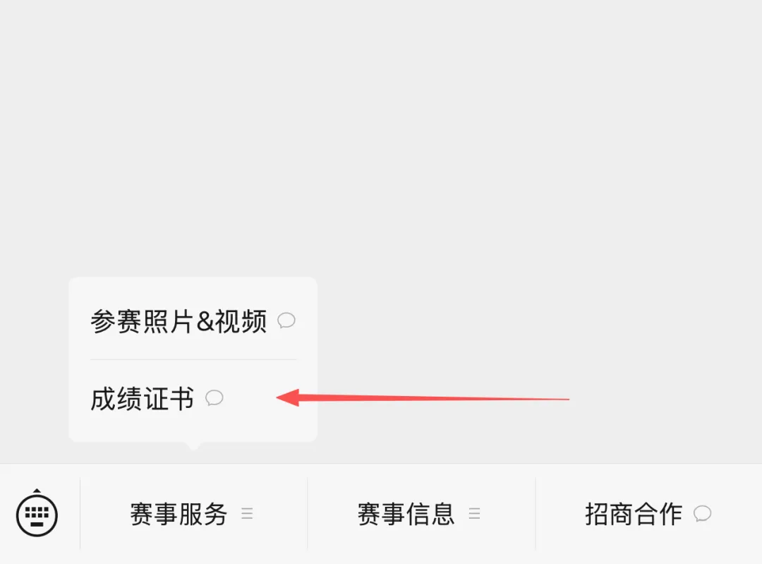 进入微信公众号菜单栏,选择「跑者服务」菜单栏内的「证书下载」。