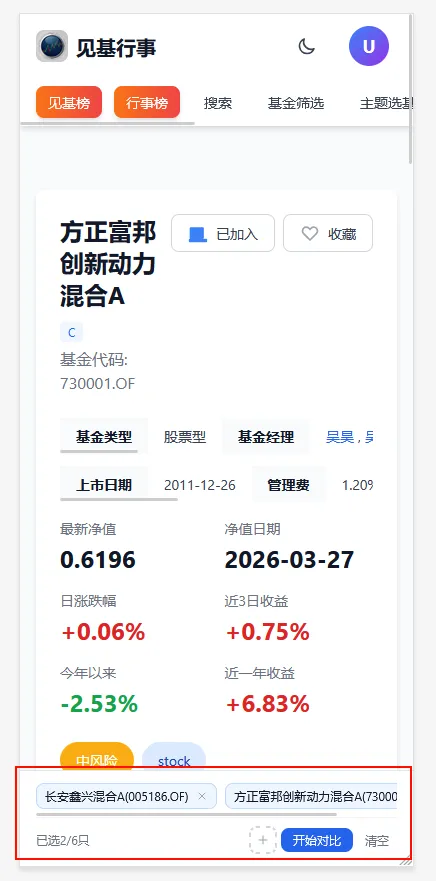 见基行事网站-手机版来啦!网站开始只弄了电脑浏览器的版本,手机的效果惨不忍睹:顶上很多文字都看不了,而且按钮、控件啥的,经常超出手机界面右侧。在朋友的督促之下,这个周末大干2天,把手机浏览器的版本,可算是大概调整好了!欢迎大家都来试下吧!(www.fundfof.com)设本号为星标,常点赞、转发、在看,更及时看到文章推送!
