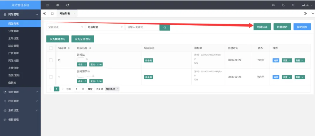 5、站点同步(同步后会更新数据缓存,站点首页,模板等)