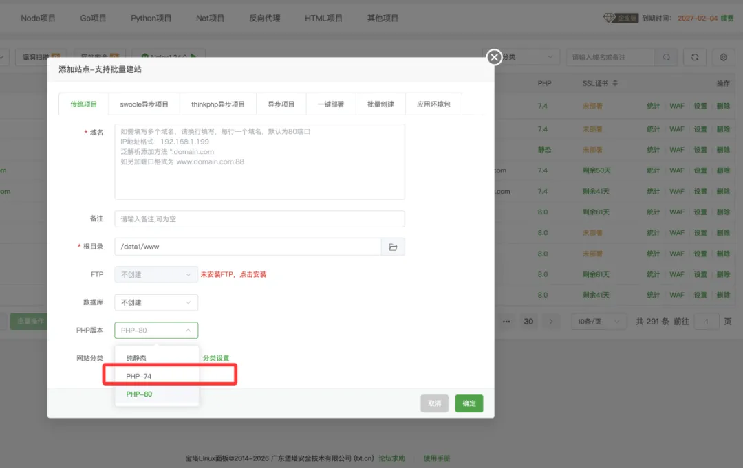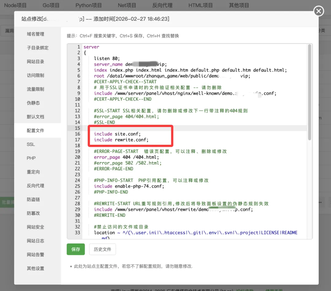 7、宝塔后台站点