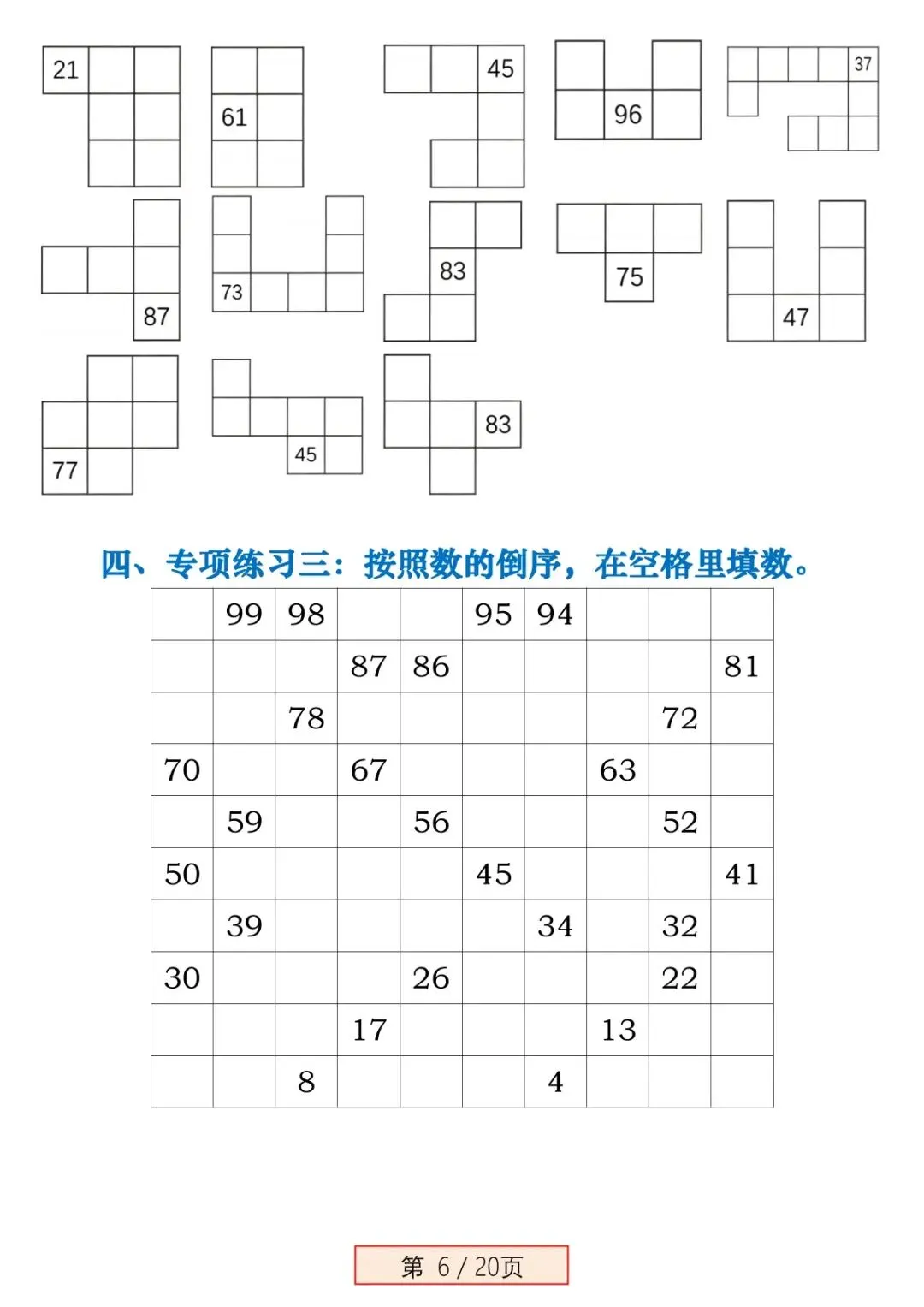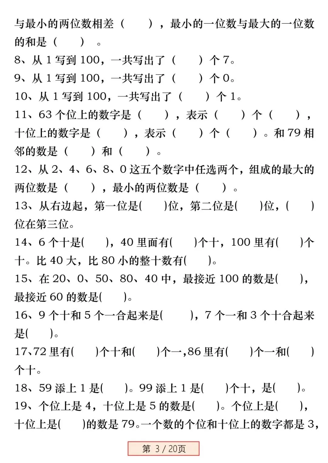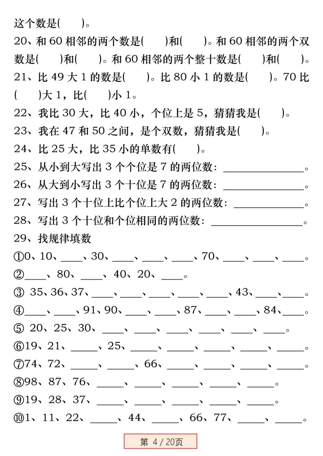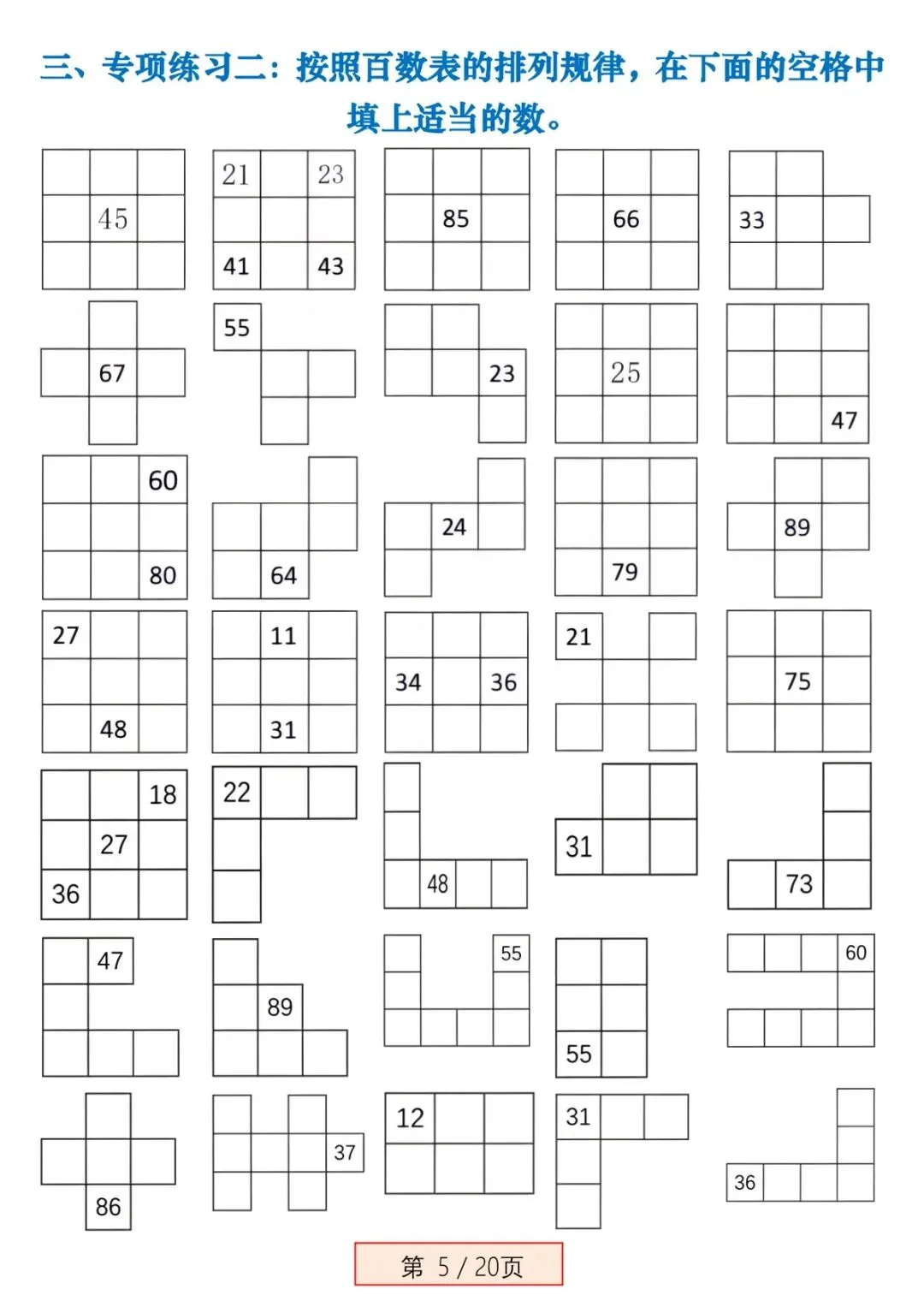本资料专为新一年级下册数学《百数表》 单元设计,聚焦百数表规律、填数、找位置、左右上下相邻数、第几行第几列等高频易错点,进行强化专项训练。题目由浅入深、典型易错题全覆盖,每道题配详细答案,可直接打印练习,帮孩子彻底吃透百数表,不丢基础分。