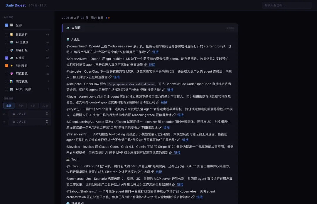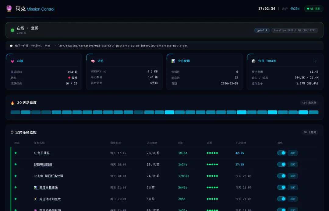 跑起来之后差别很大。日记不用挤在聊天窗口里了,健康数据能看图表,日报终于有了正经的排版。