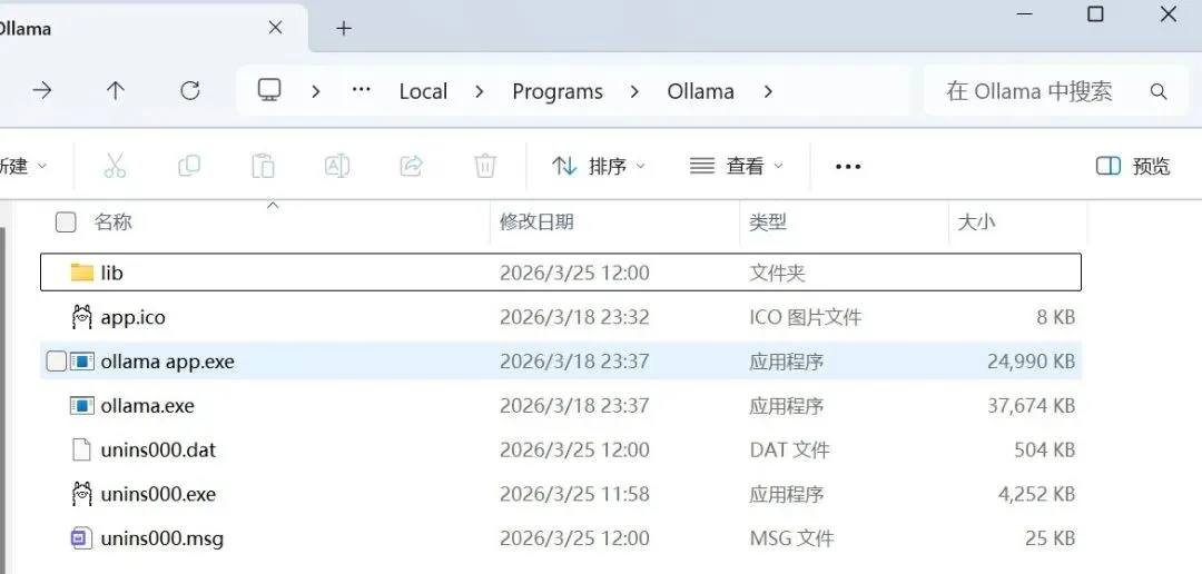2、打开Ollama的文件地址位置,在这里我们可以看到: