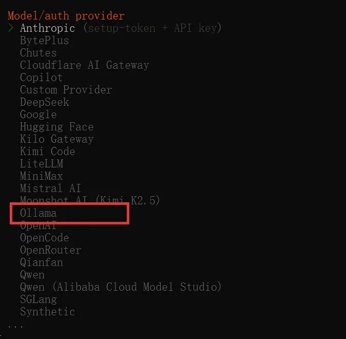http://localhost:11434。Olama mode:选择本地Local后,直接回车
