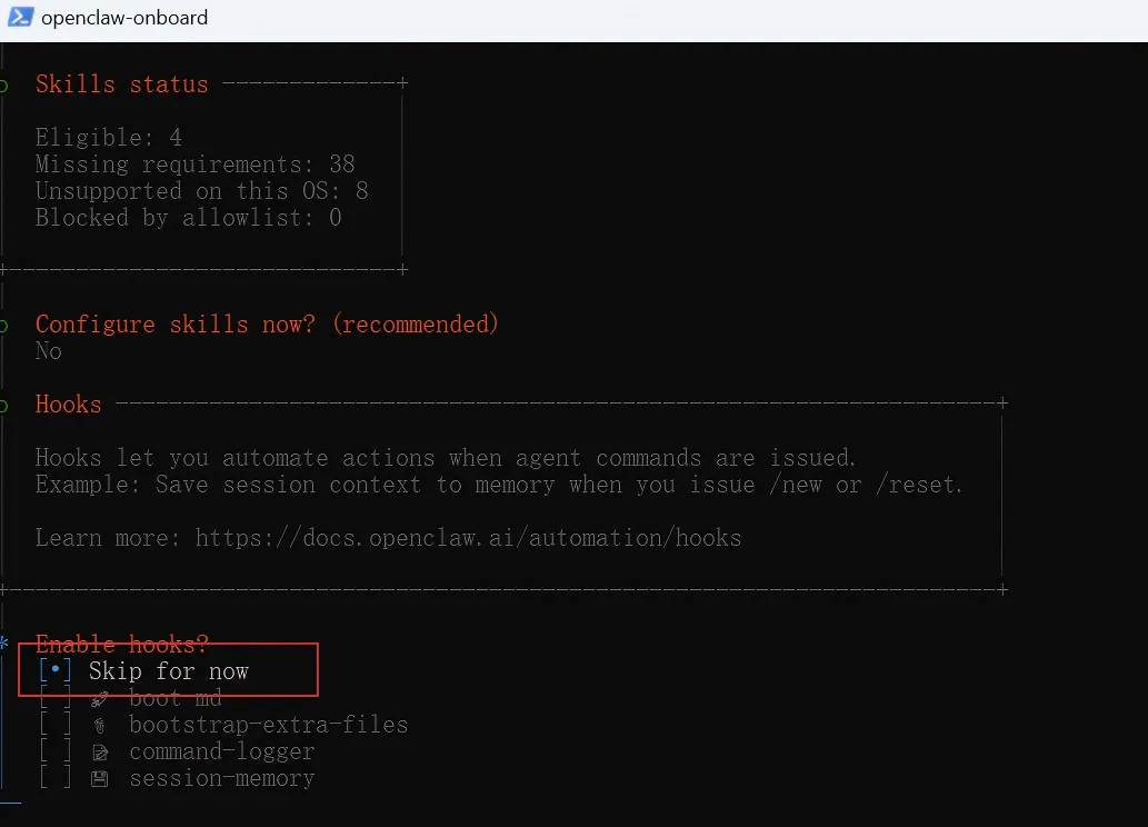此步骤用于跳过钩子(Hooks)自动化配置,直接完成初始化。