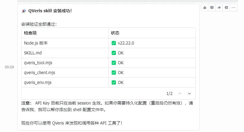 小伙伴们今天给大家推荐一个神器 QVeris 一个专为 AI 代理打造的“动作引擎”,通过智能语义搜索让代理能用自然语言发现并调用金融、新闻、社交、区块链、图像生成等超过 10,000 种真实世界的工具与数据服务。它提供统一的执行协议和纯 Node.js 的远程调用能力,确保结构化输入与机器可读响应,同时与 OpenClaw 等代理框架深度集成,支持一键安装技能,帮助 AI 代理高效完成从信息获取到操作执行的复杂任务。