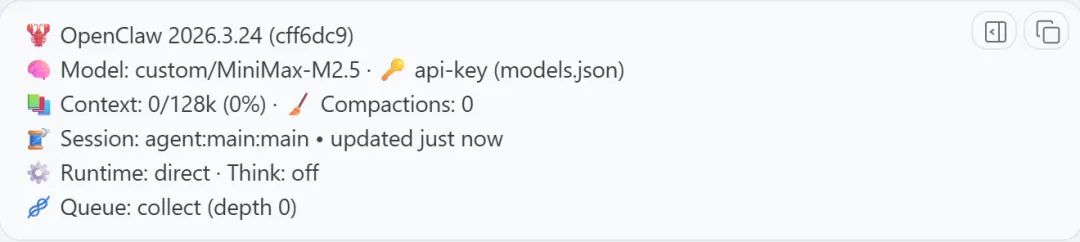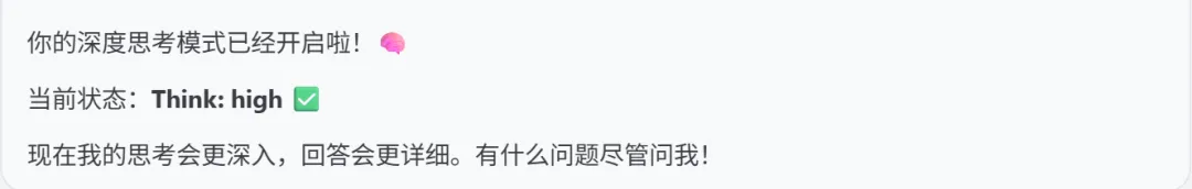 如何让OpenClaw变聪明? | 只要输入这句指令即可OpenClaw版本已经更新到了v2026.3.24,“养龙虾”养了快一个月了,结果还只能停留在对话的阶段,一不小心龙虾自己就瘫在那儿了。如何让自己的龙虾变得聪明呢?今天一句话教会大家!1、在openclaw的对话框中输入这句指令“/status”发送给openclaw后,你就会看到这样的反馈。可以看到“Think:off”这代表深度思考是关闭的状态,就像豆包和DeepSeek你没有开启深度思考模式一样。2、打开深度思考模式要想让你的龙虾变得聪明,只要把深度思考模式打开即可。我看有的教程给的指令是在对话框输入“/think high”,这个指令不太好用,还是习惯使用中文对话模式,在对话框输入“打开深度思考模式”即可。然后,你就可以看到这样的结果反馈。快去试试吧,让你的龙虾也聪明起来吧!关注我,持续更新AI工具~信息来源:信息来源于网络,如有侵权请联系删除