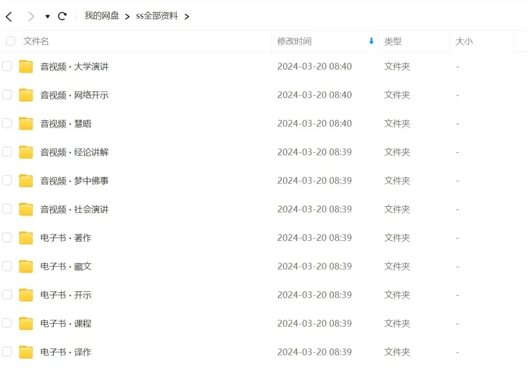 1.此链接分享包含ss现有所有视频和电子书 (所有:指截止到2024当前的所有,是最新的 最全的版本)2.本链接不知道能发布几天的时间,随时有可能被屏蔽或者删除,请有需要的人珍惜因缘,尽快下载。3.全部下载到硬盘大概需要2T-3T,18-23最新(600G以内)。4. 涉及到相关密法法本以及视频(请务必圆满五加行,得到相关灌顶才可以看,务必守护誓言!!!)