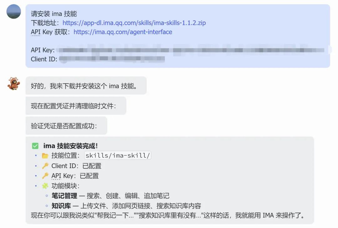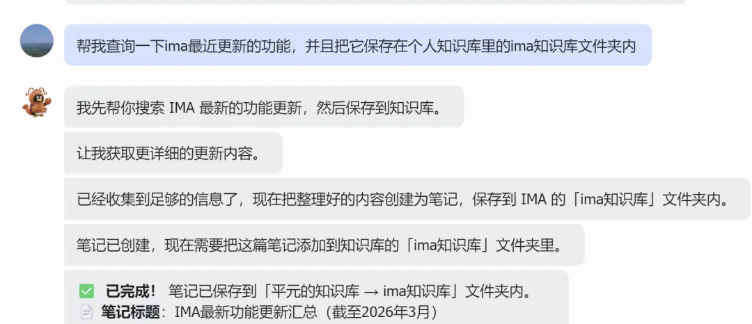 大家有没有发现,最近这段时间,手边的 AI 工具进化的速度简直像按下了加速键。前阵子刚习惯了某个功能,没过几天,它就又悄悄进化出了新形态。比如,最近 ima 刚刚上线的 Skills ,还没等我们完全熟悉,就马不停蹄地迭代出了新的版本。目前 ima 的 Skills 已经可以支持检索知识库以及导入知识库的功能了,而且,下一步还会继续支持获取知识库资料的功能。用起来也很方便,和之前的那个版本一致,告诉小龙虾 Skills 新版本的下载地址,让它自己去安装;安装好之后,就可以来试试这些功能了,直接问它 ima 里面有哪些知识库,他在回复的同时还会把这些知识库按照存放内容的类型,分门别类地整理出来,很是条理。在查询具体知识库内容的时候,它会按照文件类型进行展示,并且在没有进一步询问之前,不会直接给出子文件夹里的内容。如果有什么需要在知识库里新增的内容,也可以直接让 OpenClaw 来操作,比如让它查一查 ima 最近更新的内容;等到任务完成以后,我们就可以在 ima 里找到这份内容了,整体流程很顺畅。以上平元演示的都是在飞书上和 OpenClaw 对话,近期微信也推出了 ClawBot 插件,把 OpenClaw 升级到最新版本后,就可以直接在微信上接入自己部署的小龙虾,直接在微信聊天框中操作 ima 知识库了。平元的 OpenClaw 是部署在云端上的,在接微信插件之前,需要先打开云端服务器的应用管理,把 OpenClaw 升级到最新版本。升级好以后,在通道这块,就会出现微信的接入提示。用微信扫码就可以接入了。点击连接,微信里就会启用 ClawBot 插件,我们也就可以直接在微信聊天框里和小龙虾对话了。 至此,上面讲的 ima 知识库的相关操作,也就可以直接在微信里进行了。体验完这一圈下来,不管是 ima 还是微信的这波更新,其实都释放了一个特别清晰的信号:AI 正在变得越来越“接地气”。它不再需要我们刻意打开某个特定的网页,不再需要我们输入某些固定的指令,反而是把这些都直接融进了我们最熟悉的对话框和日常的工作流里,然后它就默默地做完了繁琐的搬运工作。让技术回归日常,或许这才是 AI 最好的归宿。大家最近在折腾这些工具时,有没有发掘出什么好玩的新用法?欢迎在评论区留言,咱们一起交流探讨~