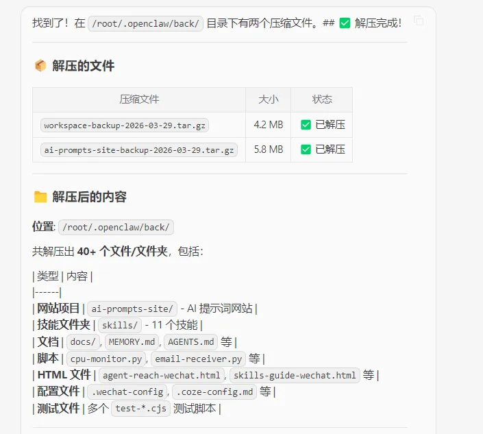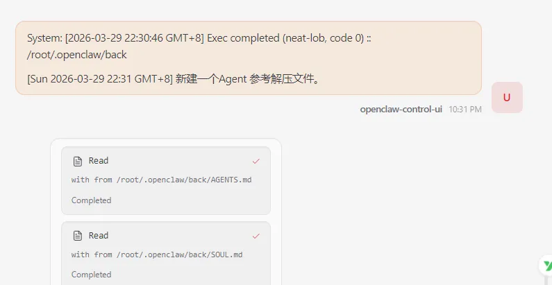 1、要小龙虾自己备份并且压缩Agent