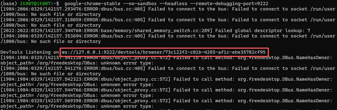 google-chrome-stable --no-sandbox --headless --remote-debugging-port=9222