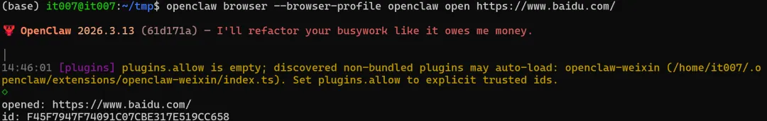 openclaw browser --browser-profile openclaw open https://www.baidu.com/