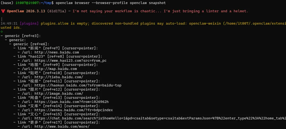 openclaw browser --browser-profile openclaw snapshot