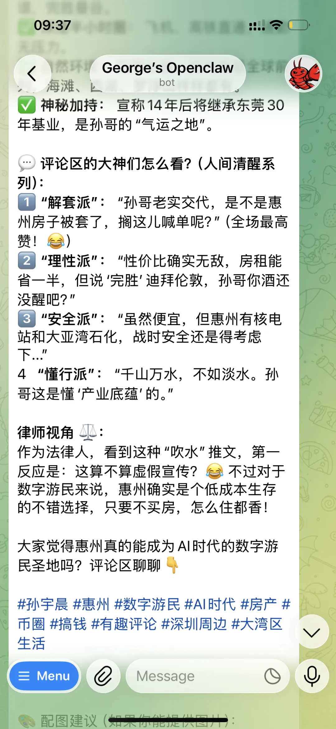 下面就是我刚开始玩OpenClaw追孙宇晨热点的实战。