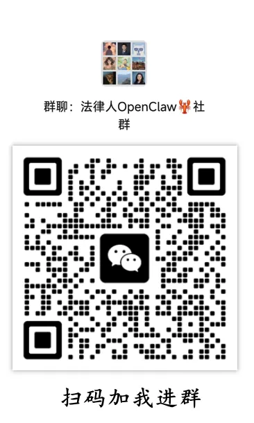 我也建了一个OpenClaw法律人社群,大家如果有想加入,可以加我微信跟我说。