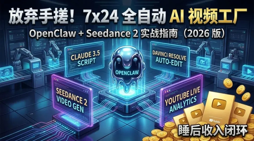 放弃手搓!OpenClaw 打造 7x24 全自动 AI 视频工厂:从 Seedance 2 量产到 YouTube 睡后收入闭环实战指南(2026 深度落地版)