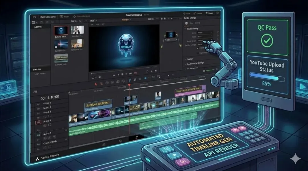 落地加速:GitHub 上已有 DaVinci Python 脚本模板(搜索 “DaVinci Resolve Python API timeline automation”),直接让 OpenClaw 调用。