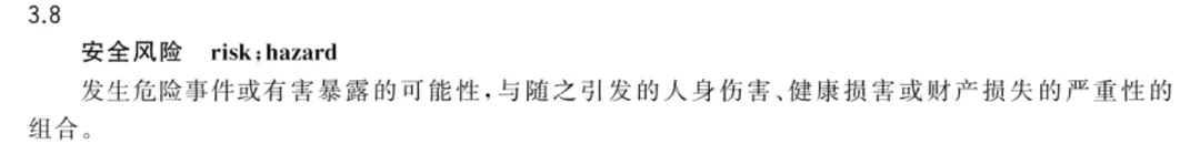 《企业安全生产标准化基本规范》(GB/T 33000-2016)对安全风险进行了明确的定义: