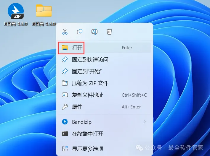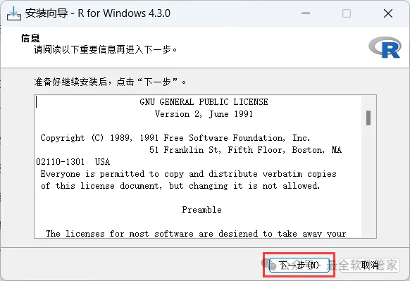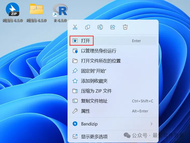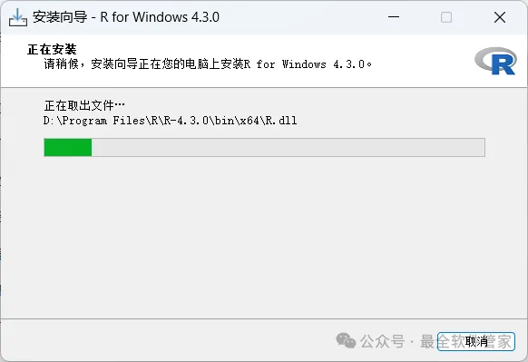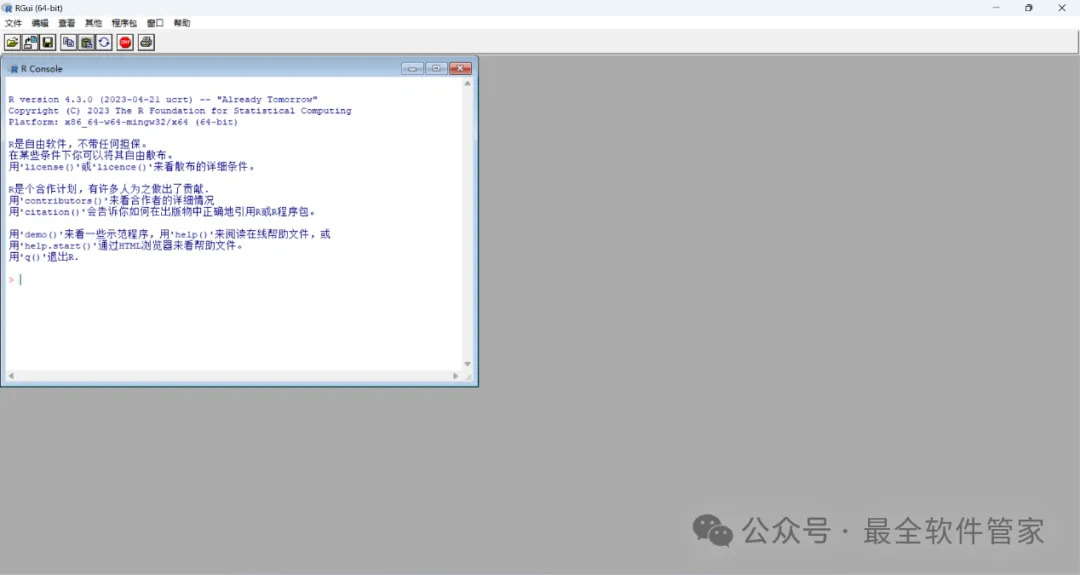 [不限速下载]:免费获取百度网盘不限速下载工具。公众号内回复:不限速[注意事项]:安装前请关闭网络、杀毒软件和防火墙,否则易安装失败。公众号内回复:1[解压软件]:小编用的解压软件是Bandizip,获取Bandizip软件安装包。公众号内回复:21、下载R语言 4.3.0软件安装包到电脑上,右键选择【解压到R语言 4.3.0\】3、找到【R-4.3.0】应用程序,右键选择【以管理员身份运行】它6、软件默认安装在C盘,可自定义更改软件安装位置,这里小编选择安装在D盘;点击【下一步】13、回到桌面,右键桌面上的【R 4.3.0软件图标】,点击【打开】15、以上就是R语言 4.3.0软件安装的全过程,要是对你有帮助的话,请为小编点个赞!免责声明:软件资源均来源于网络,仅供用户交流学习与研究使用,版权归属原版权方所有,版权争议与本公众号无关,用户本人下载后不能用作商业或非法用途,否则后果均由用户承担责任;如果您访问和下载此文件,表示您同意只将此软件用于参考、学习而非其他用途,否则一切后果请您自行承担,请于下载后24小时内删除,不允许用于商业用途,否则法律问题自行承担。如果您喜欢该软件,请支持正版软件,购买注册,得到更好的正版服务。