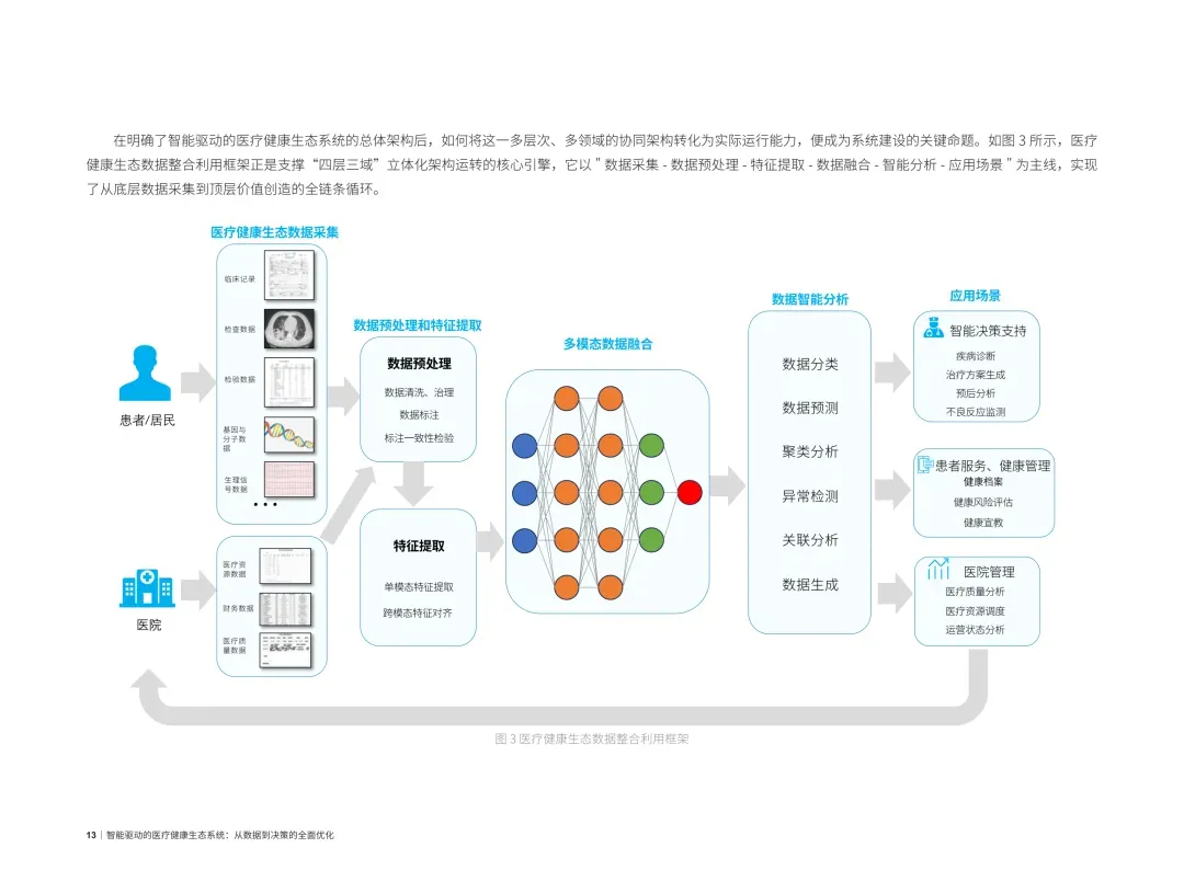 痛点解决:报告指出,传统医院存在严重的“数据孤岛”,而多模态数据融合(文本+影像+生理信号)技术已能将这些碎片化数据转化为90%以上的风险识别准确率。