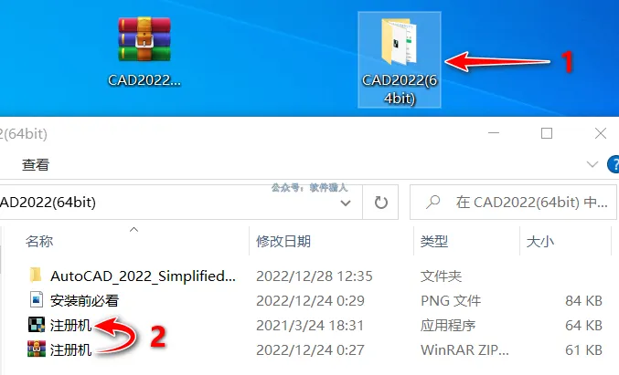 3、打开解压后的“CAD2022(64bit)”文件夹,将“注册机”也解压。