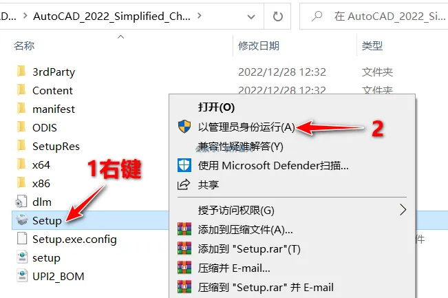 5、右键Setup,以管理员身份运行。