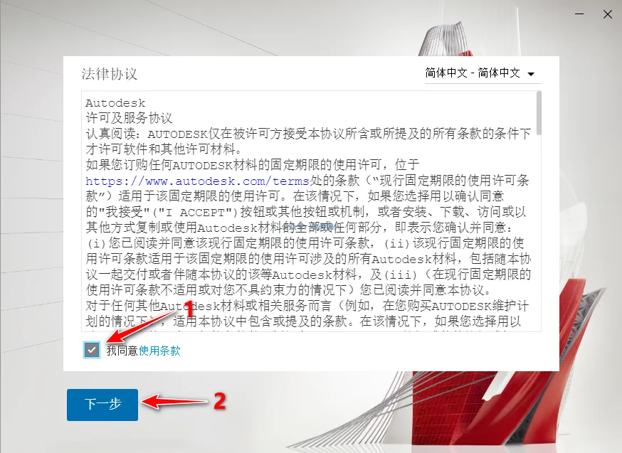 6、勾选同意条款,下一步。
