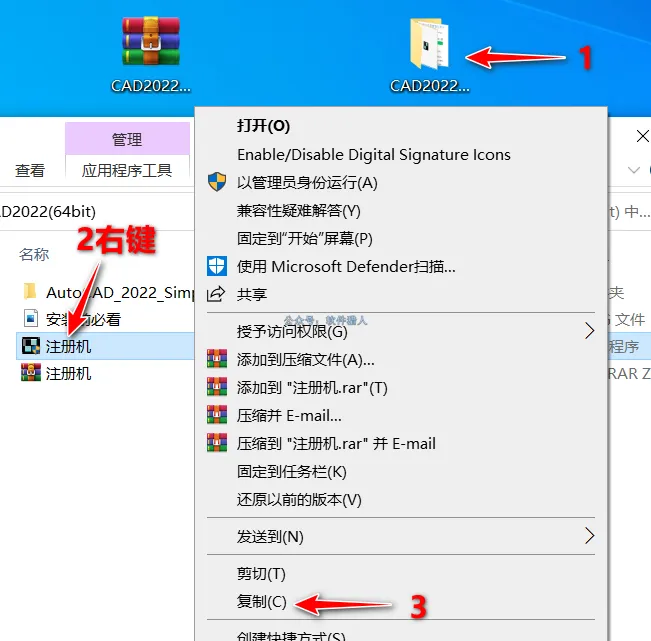 10、打开解压后的“CAD2022(64bit)”文件夹,复制“注册机”。
