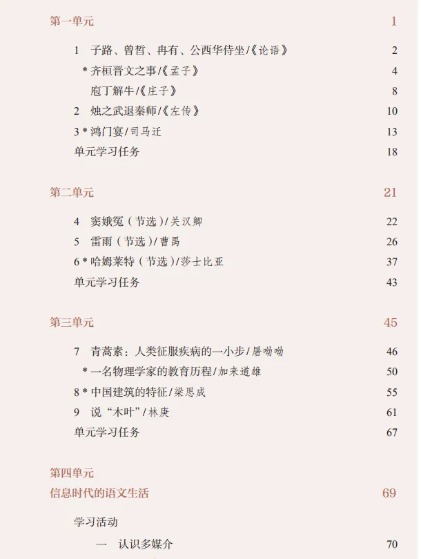 本单元选取了《论语》《孟子》《庄子》中的经典篇章,以及《左传》《史记》的精彩片段。阅读这些文章,有助于我们了解中华文化的一些重要理念,领会其中包含的人文精神,深化对传统文化的认识,增强文化自信。