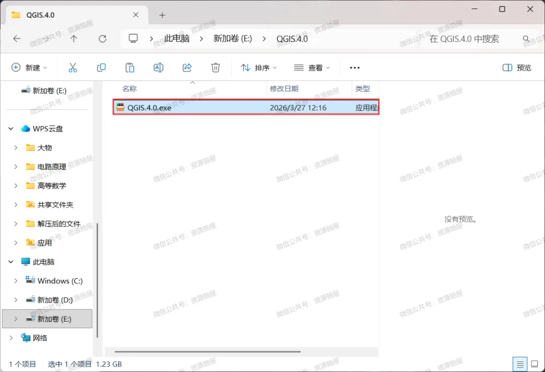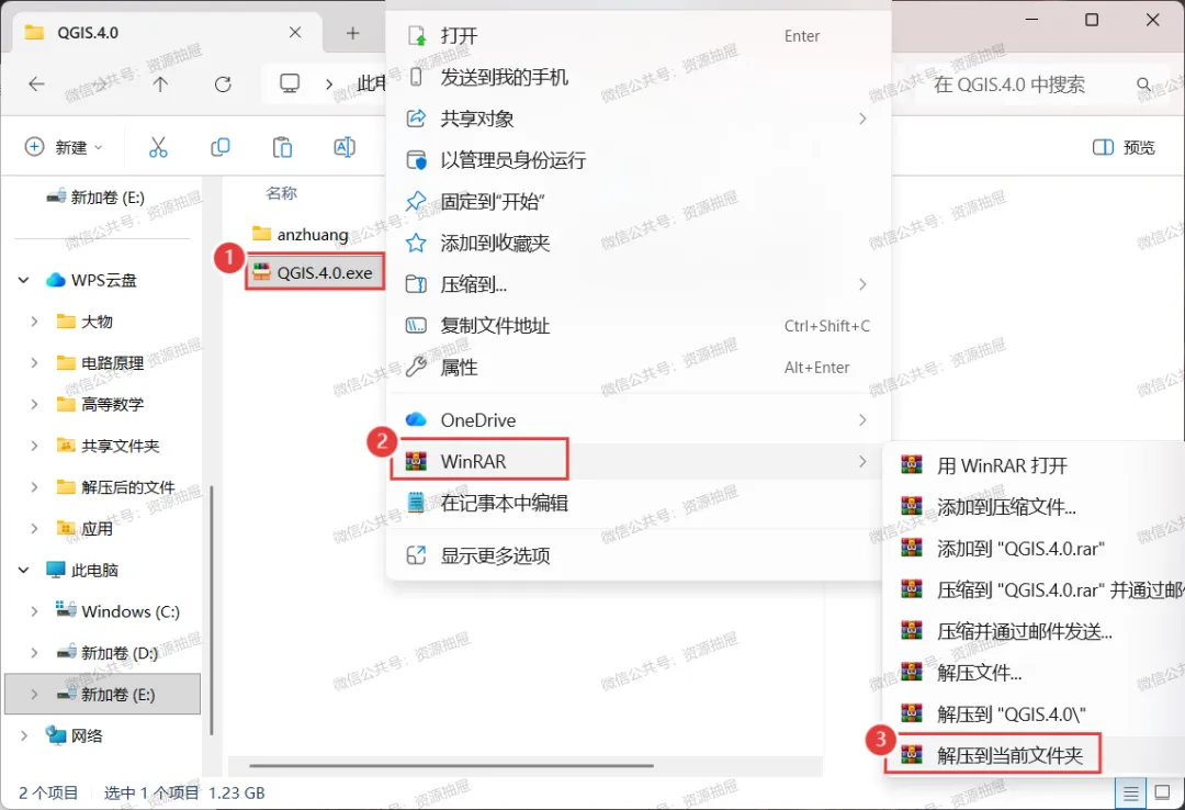 3.将压缩包[QGIS.4.0.exe]解压到当前文件夹