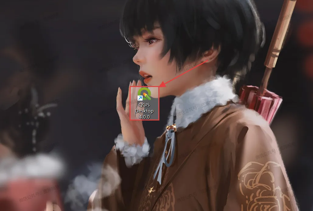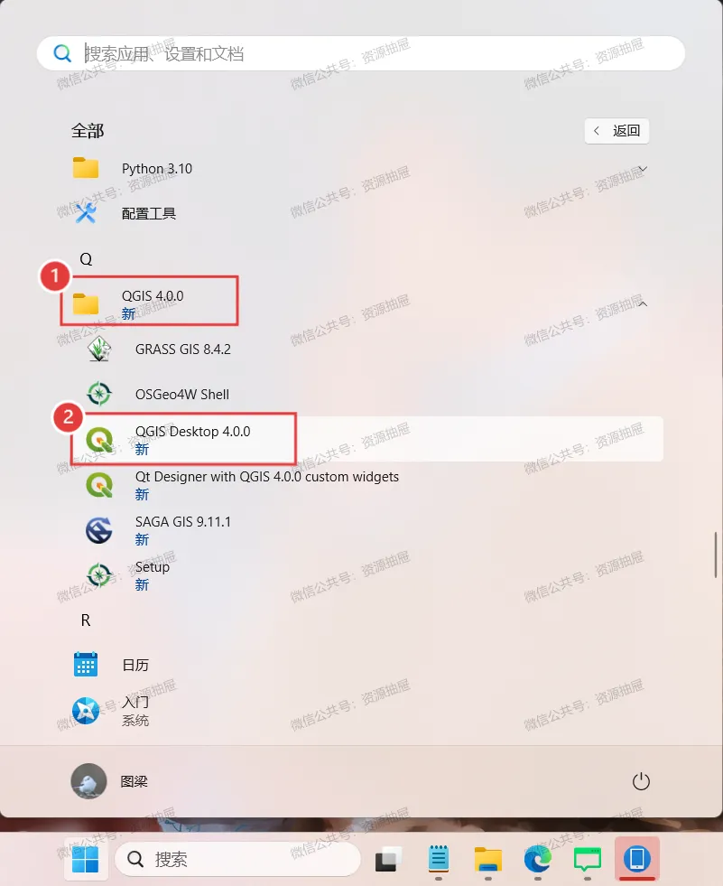15.打开[QGIS 4.0.0],找到并将[QGIS Desktop 4.0.0]拖到桌面