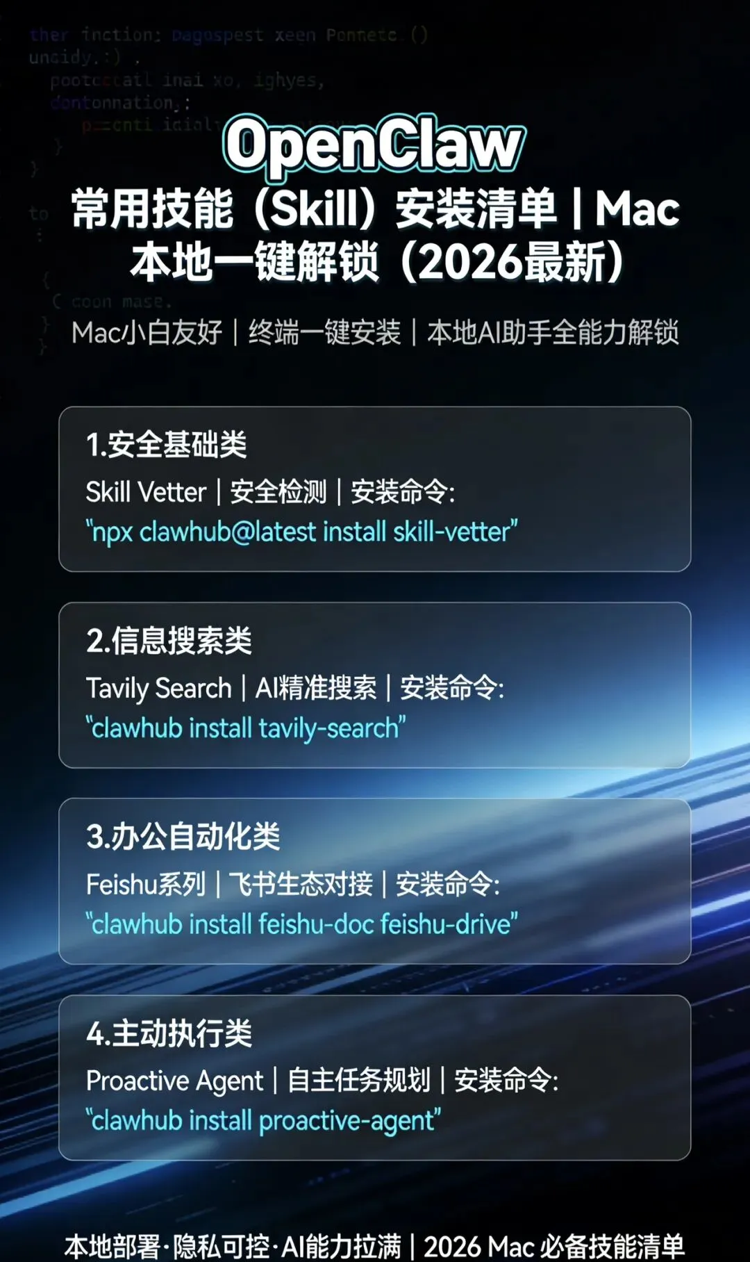 重启服务: openclaw restart打开面板: openclaw dashboard→ 进入「Skills」查看已装本地运行,数据不上云,隐私安全