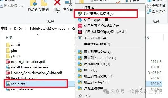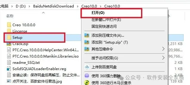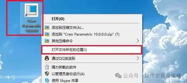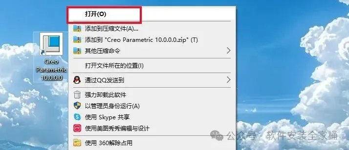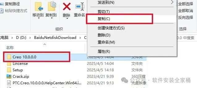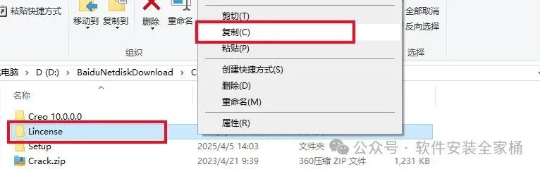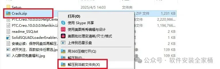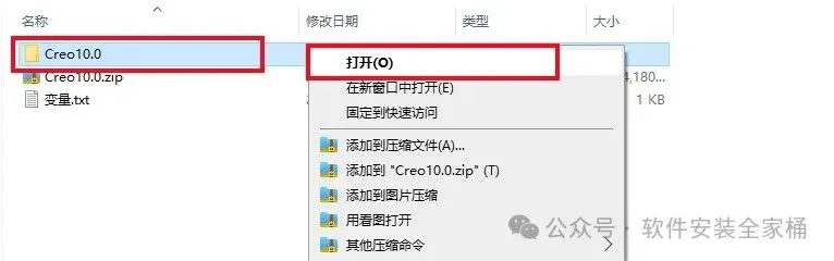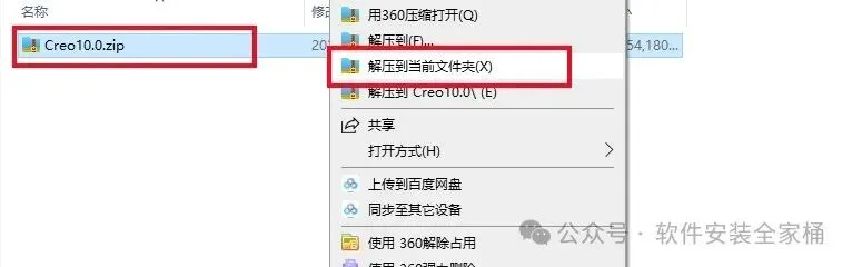 1.打开下载的Creo软件安装包,鼠标右击压缩包选择【解压到当前文件夹】。