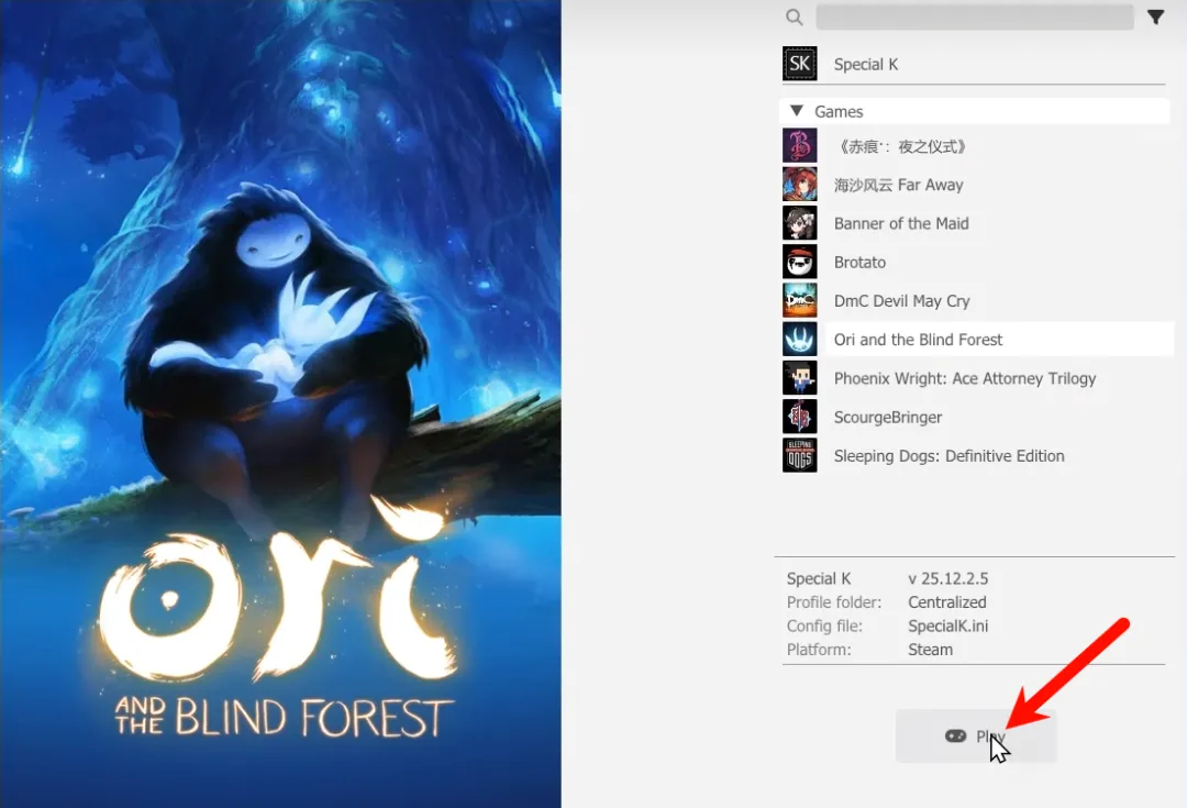 选择需要用手柄玩的游戏,点击play按钮进行启动