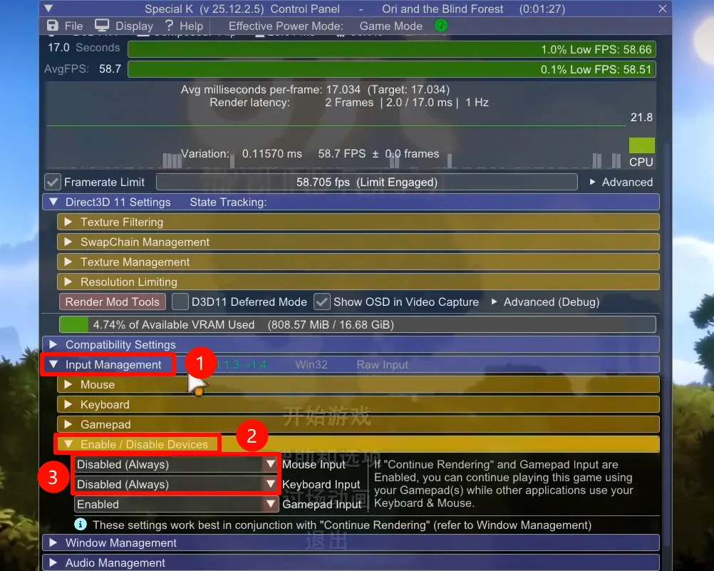 然后是把Input Management下Enable/Disable Device里的Mouse Input和Keyboard Input改为Disabled(Always)