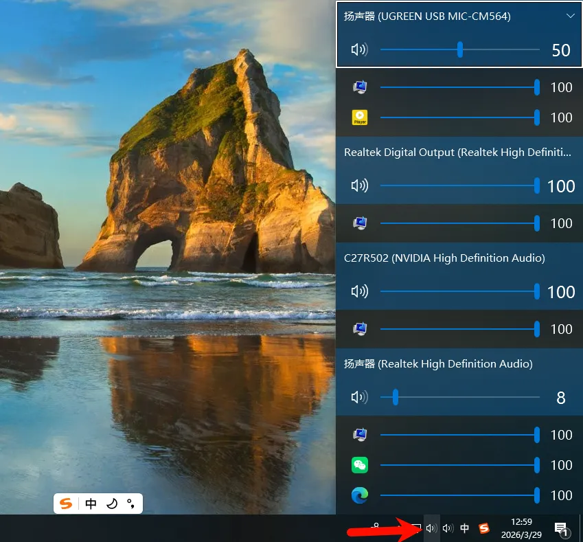 安装完成后,电脑右下角会多出一个扬声器选项,点击它就能看到哪些软件在使用哪个扬声器了
