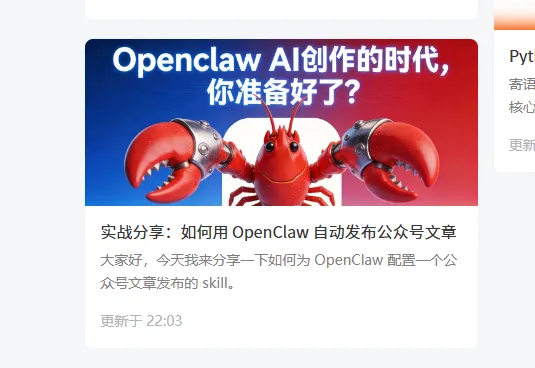 由于小编刚开始使用了一个下午,就以一个例子来展示怎么养一只会自己发文章的 *"小龙虾"*本来想把这个过程好好写一下,添点盐加点醋?