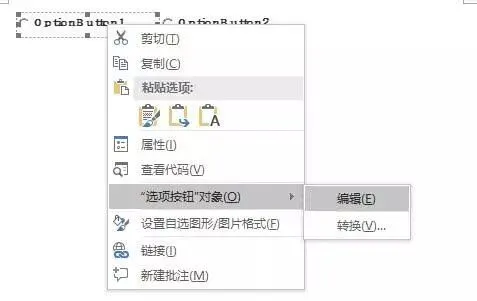 (2)右击“单选框”,“选项按钮”对象--“编辑”,这时单选框就处于编辑状态,可对单选框的文字进行修改;