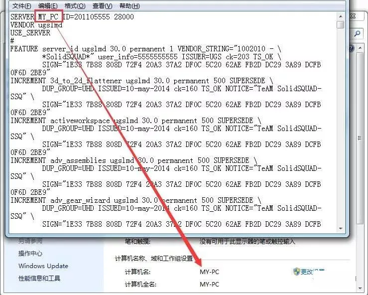 3.用户的计算机名可在计算机属性中查看,将NX7记事本中this-host 替换成你的计算机名,然后保存并退出记事本。