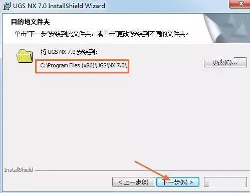 9.如需修改安装路径,点击更改,直接将C修改为你需要安装到的盘,本例安装到C盘,点击下一步。