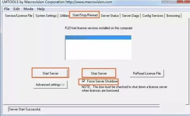 18.在Start/Stop/Reread中选中下方复选框,点击Stop Server,之后再点击Start Server,在下方显示Server Start