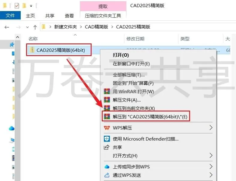 1.鼠标右击→压缩包,选择→解压到 CAD2025(64bit)精简版