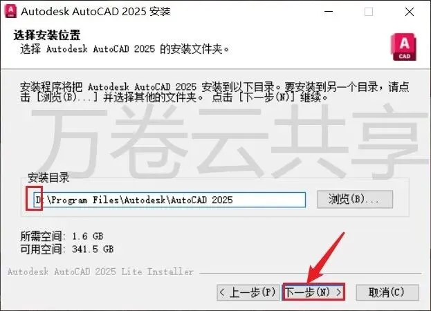 7.修改路径地址中的第一个字符C可更改安装位置(如:把C改为D软件将安装到D盘),点击→下一步