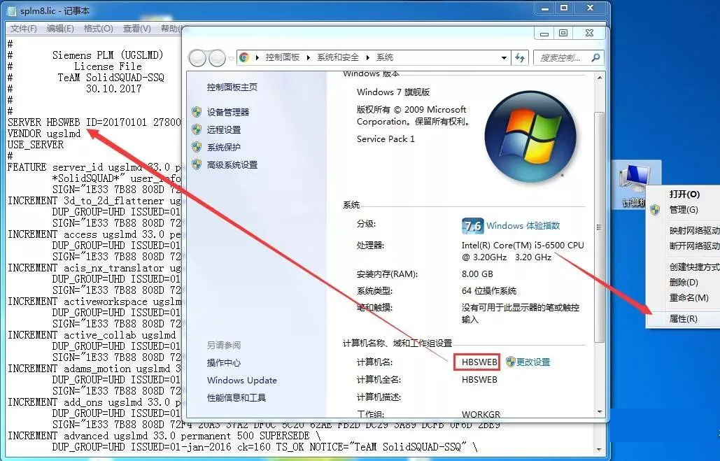 12.用户的计算机名可在计算机属性中查看,然后在splm8记事本中将this-host 替换成你的计算机名。