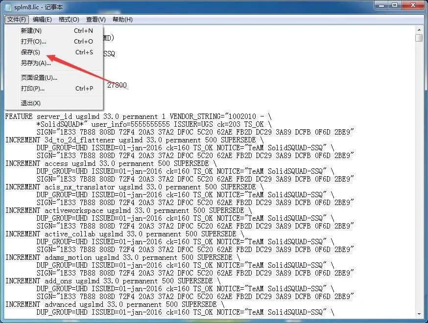 11.打开解压后的安装包,进入破解文件,找到splm8.lic以记事本的方式打开。