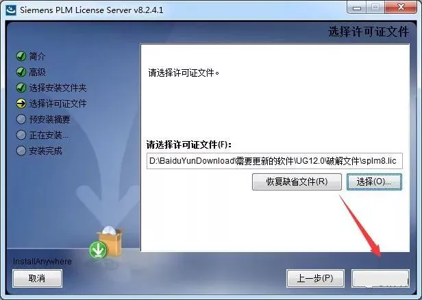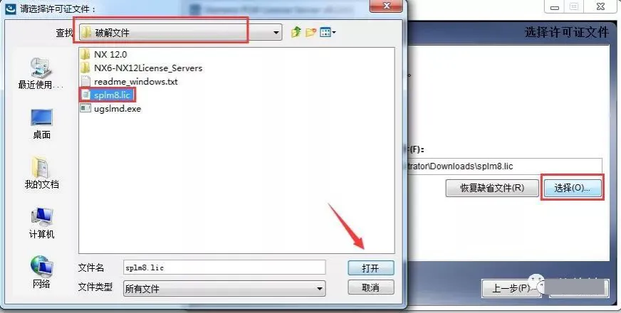 14.点击选择,找到刚刚修改的splm8.lic文件,点击打开。