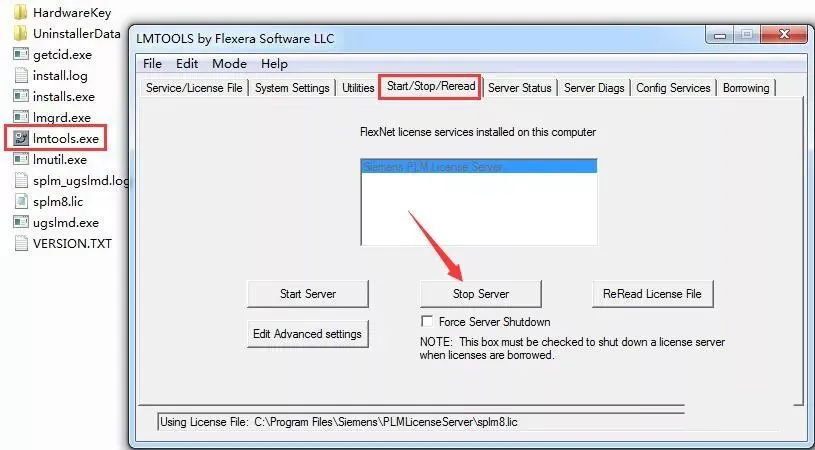 20.打开PLMLicenseServer目录中lmtools,点击图示中的Stop Server。