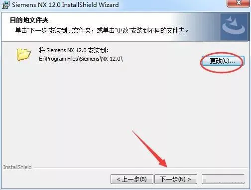 27.点击更改可以修改安装目录(本例安装到E盘),点击下一步。