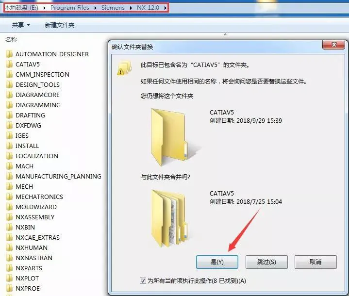 35.粘贴到【E:\Program Files\Siemens\NX 12.0】目录中(参考第27步安装路径),然后选择是。