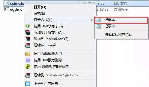 5.打开破解文件PLMLicenseServer下的splm6.lic文件,右键以记事本方式打开。